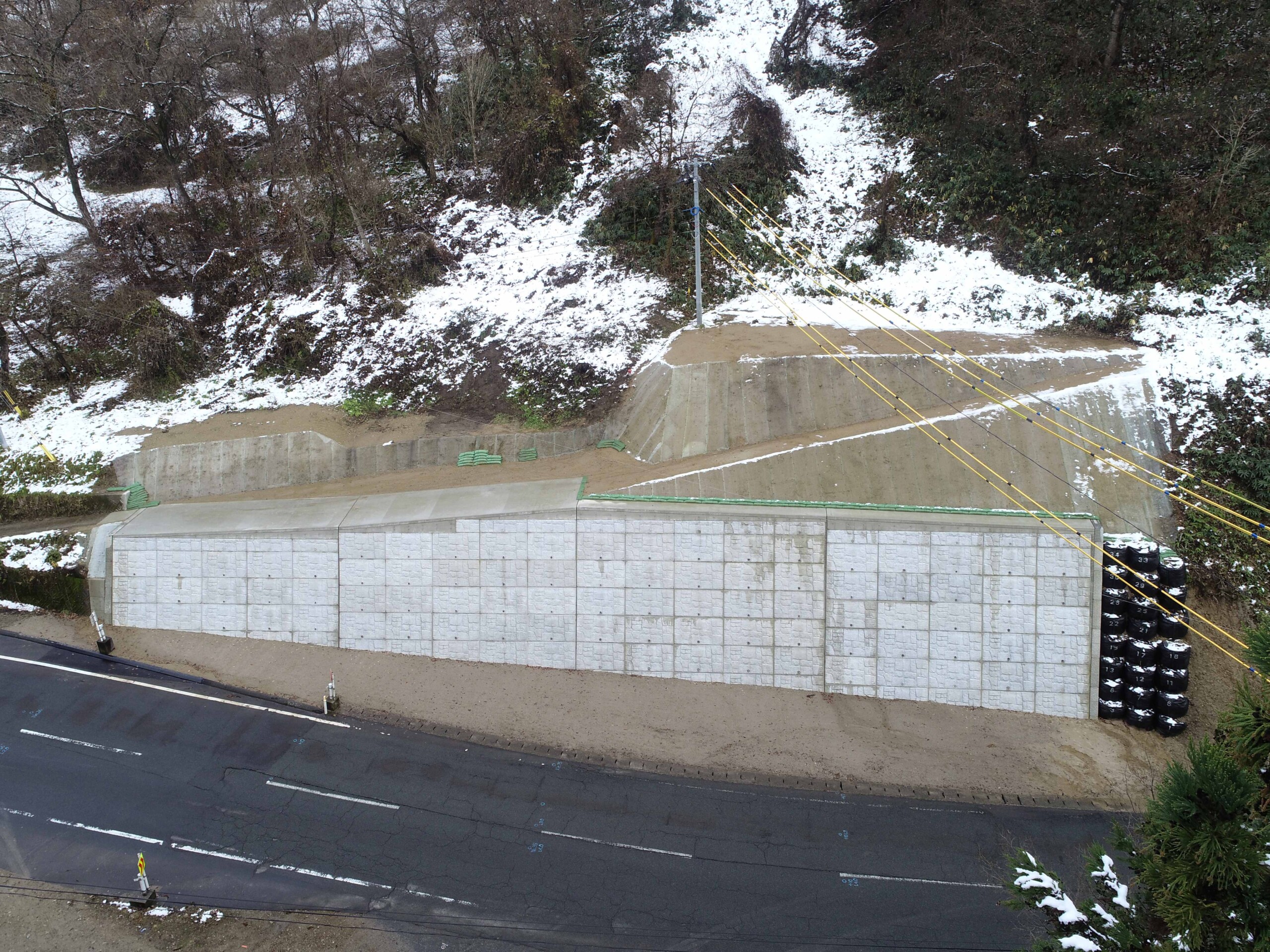 土工:A=2,180㎡・大型ブロック積工:A=289㎡・舗装工:A=715㎡・側溝工:L=125m